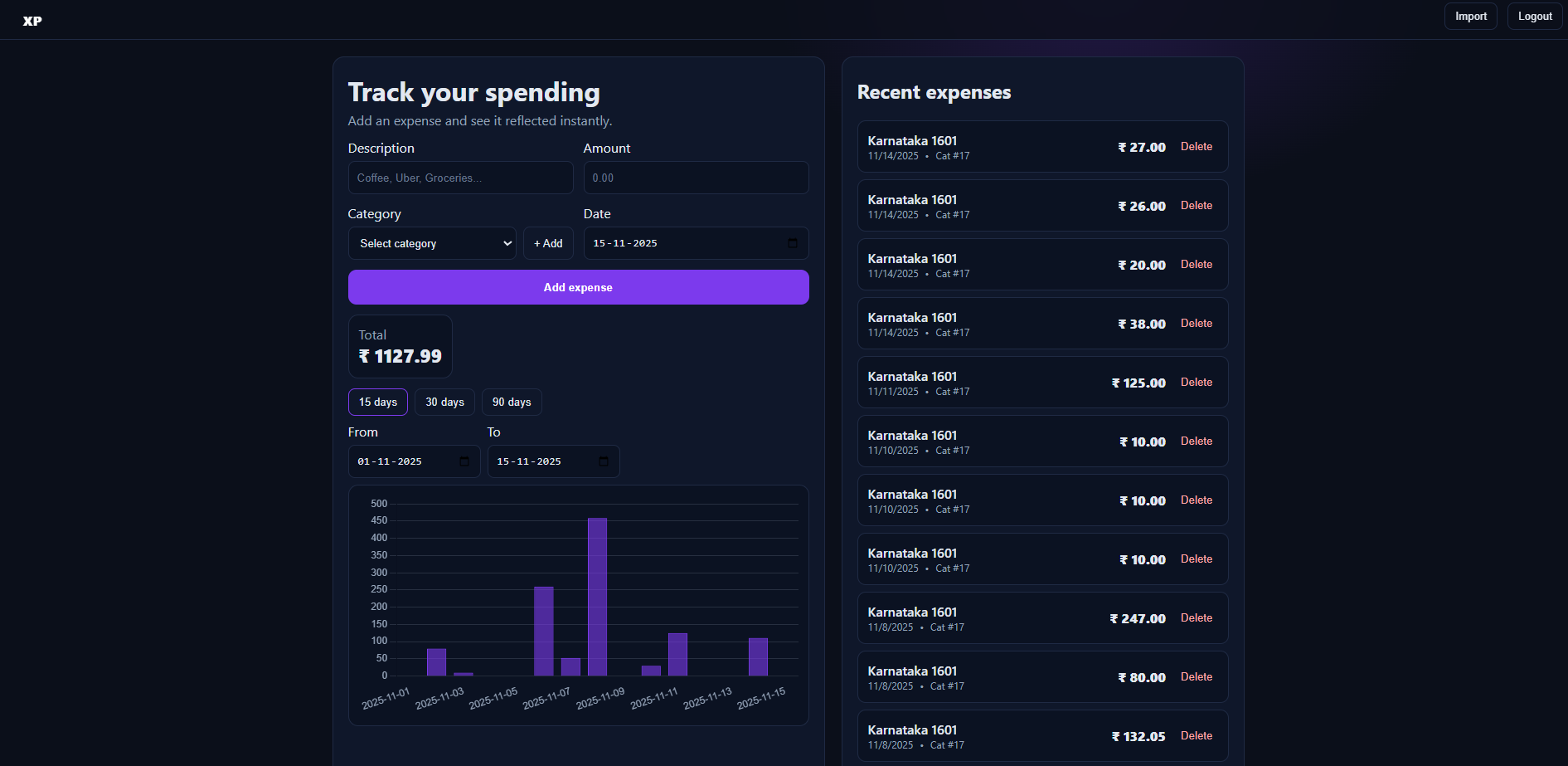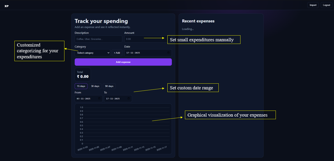 XP is a modern expense tracking application designed to simplify personal finance management. With an intuitive interface and powerful features, it helps users stay on top of their spending habits and make informed financial decisions.